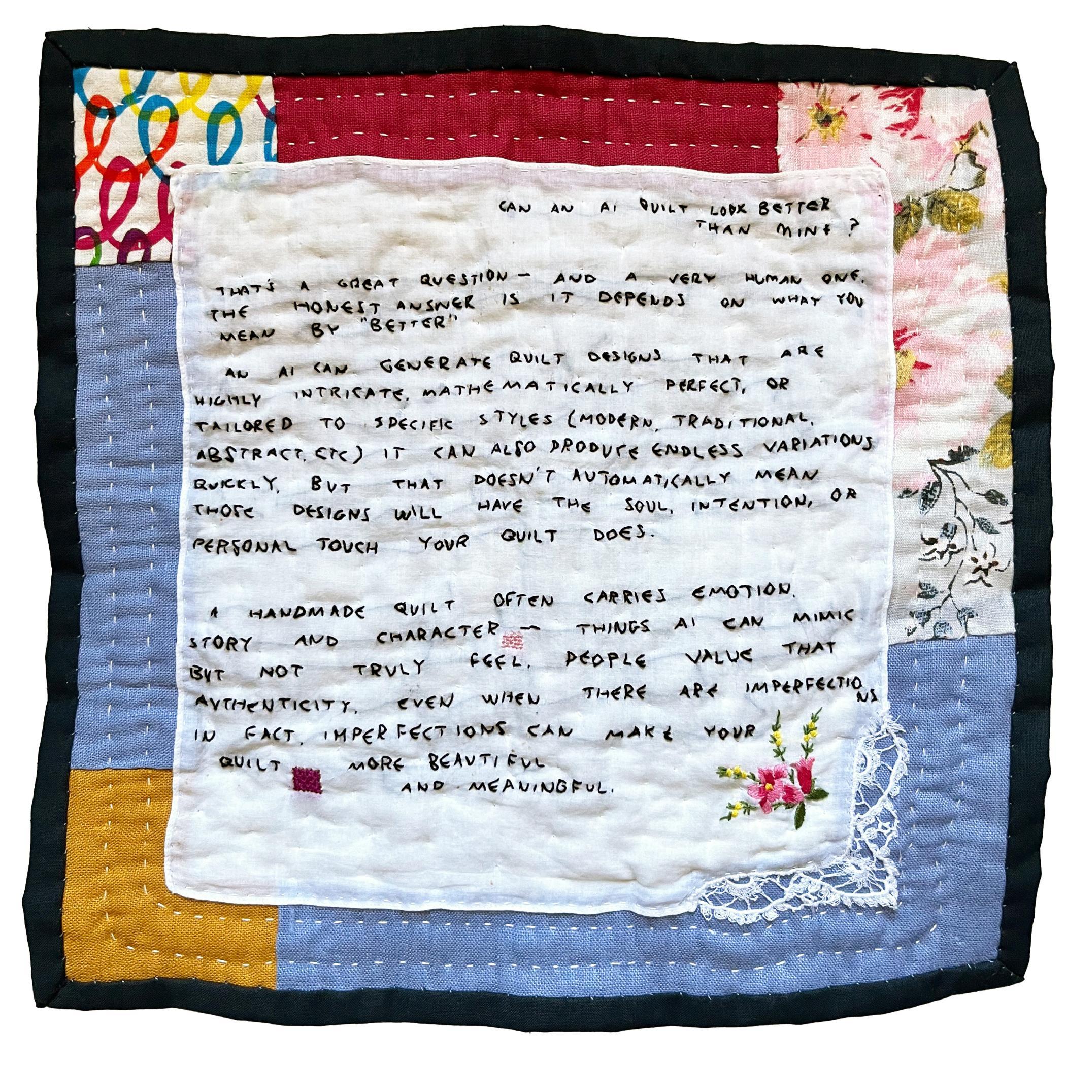 AI: Artistic Interpretations unites the creativity of fiber artists from across the globe with the algorithms, data, and machine learning of Artificial Intelligence. This exhibition showcases the boundless creativity that emerges when human artistry combines with the potential of technology.